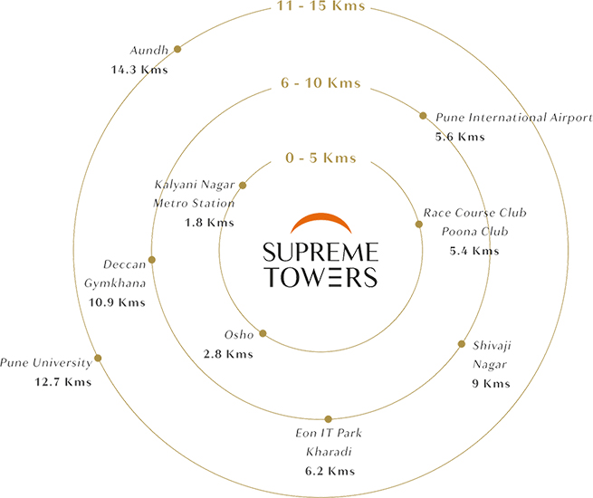 Explore our exquisite 3 BHK, 4 BHK, and 5 BHK apartments at Supreme Towers, nestled in the serene surroundings of Koregaon Park - Mundhwa, Pune. For pricing details and a comprehensive cost breakdown covering carpet area, parking, amenities, and more, connect with us on WhatsApp for personalized assistance.